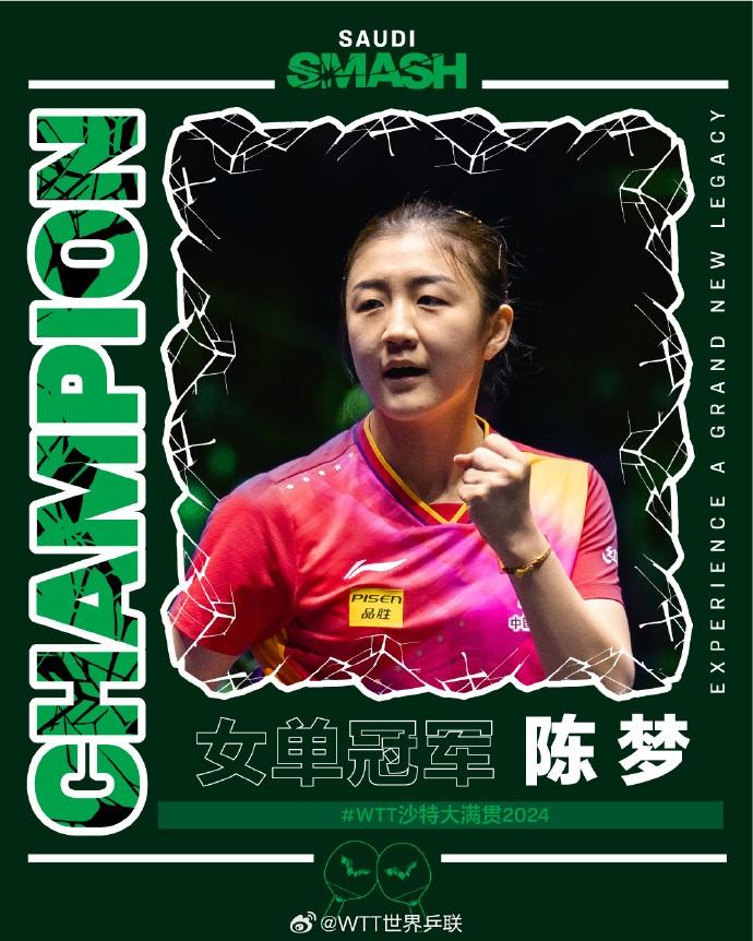 女单夺冠!陈梦4-2逆转孙颖莎,夺得沙特大满贯女单冠军
