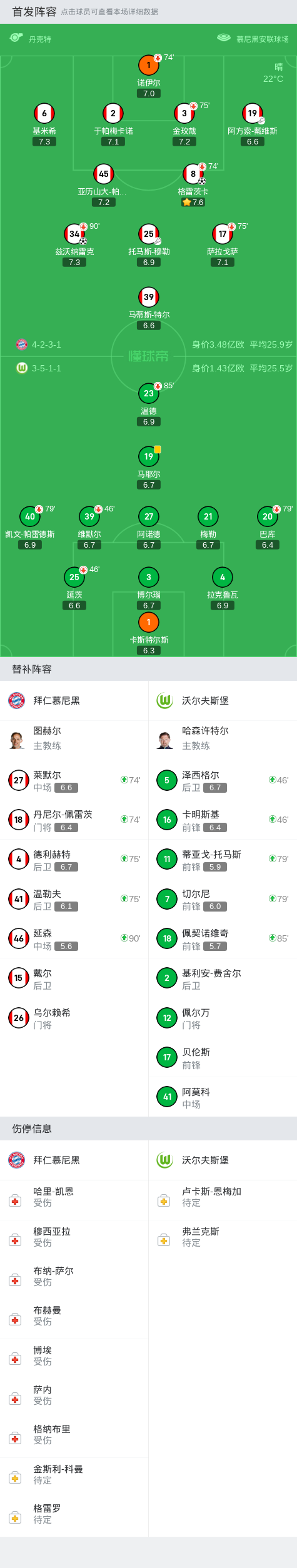 剑南春|拜仁2-0狼堡,兹沃纳雷克处子球,格雷茨卡建功