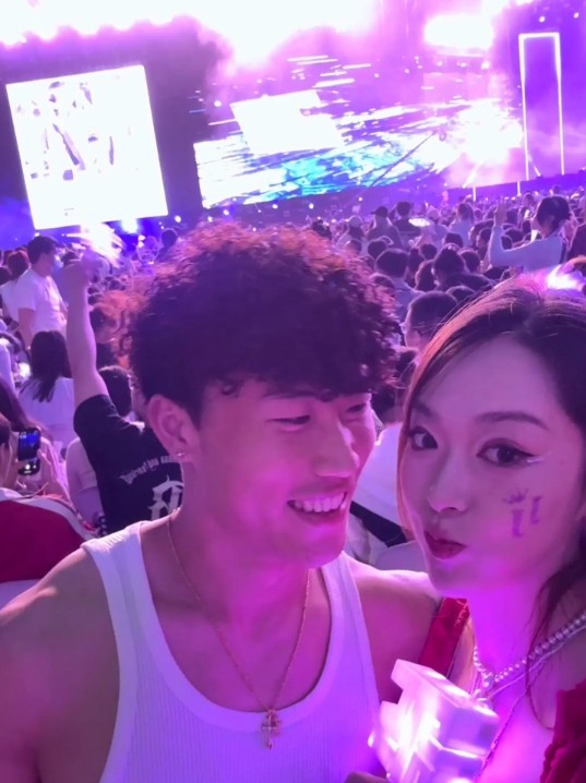 谢文能和妻子听林俊杰演唱会:今天来济南奥体不踢球