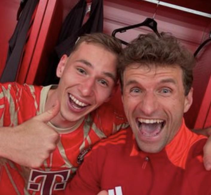 德甲第33轮,拜仁在主场2-0击败沃尔夫斯堡。在本场比赛中,19岁小将兹沃纳雷克首发出场,并打进一球。赛后,托马斯-穆勒鼓励了这位球员。