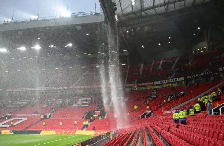在昨天晚上进行的英超第37轮比赛中,曼联主场0-1不敌阿森纳,在比赛的最后时刻,曼彻斯特下起了大雨,老特拉福德的屋顶漏水导致球场变成了“水帘洞”。