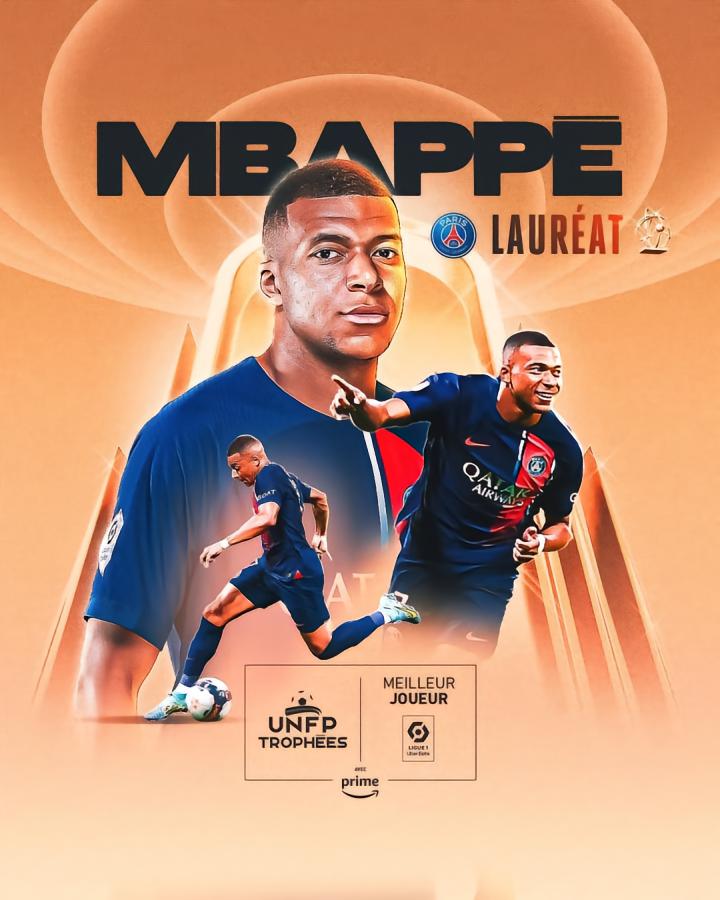 最终经过评选,姆巴佩当选法国职业球员工会(UNFP)法甲赛季最佳球员。