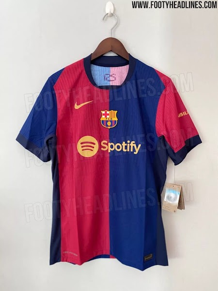 知名球衣装备网站footyheadlines曝光了巴塞罗那2024-25赛季的主场球衣照片,依然是以红蓝为主,致敬巴萨100周年纪念球衣,与08-09赛季相似。