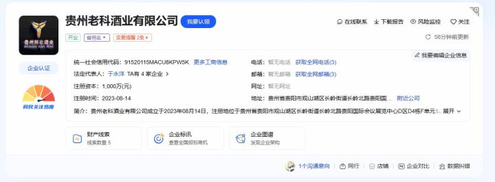 据此前报道,贵州科比酒业已于2024年5月发生工商变更,公司新名称变更为贵州老科酒业有限公司。