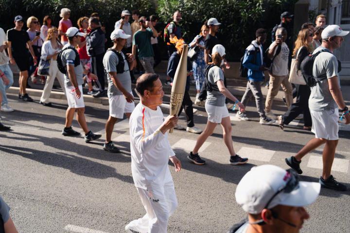 当地时间5月13日,巴黎奥运会火炬传递来到第五站蒙彼利埃省,中国企业家刘瑞旗参与该阶段传递活动,成为本届奥运会火炬传递的第一名中国籍火炬手。