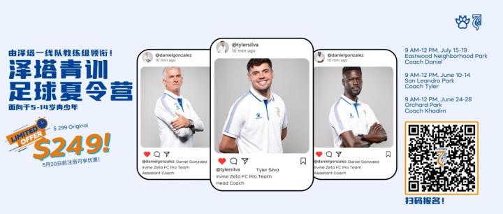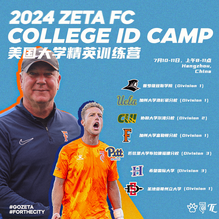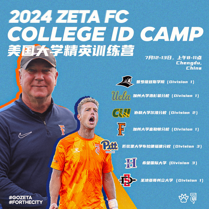 通过足球特长上美国大学?很多国内家长或许听说过,但了解详细的不多。这不尔湾泽塔(Irvine Zeta FC)作为全美首支中资职业足球俱乐部今夏将美国大学精英选拔训练营(College ID Camp)带到中国,为国内足球特长生搭建起一条留学美国的通道。7月10-11日(杭州站)和7月12-13日(成都站)现已开放报名,欢迎有一定足球特长的学生球员或职业俱乐部青训梯队球员报名参加,年龄不限。5月31日前报名还将享受优惠。