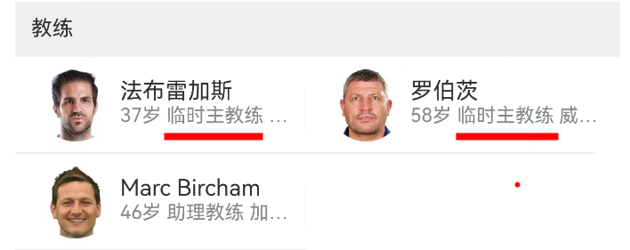 CEO丹尼斯-怀斯、足坛名宿法布雷加斯、代理主帅罗伯茨。