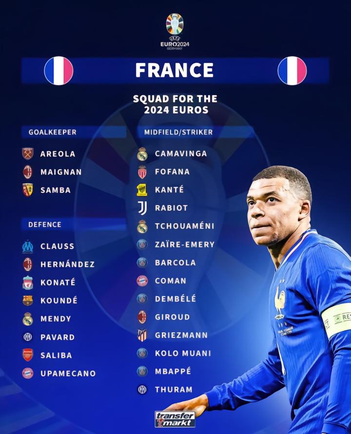 此次法国队的25人大名单中,一共有17人的身价至少达到了4000万欧元。