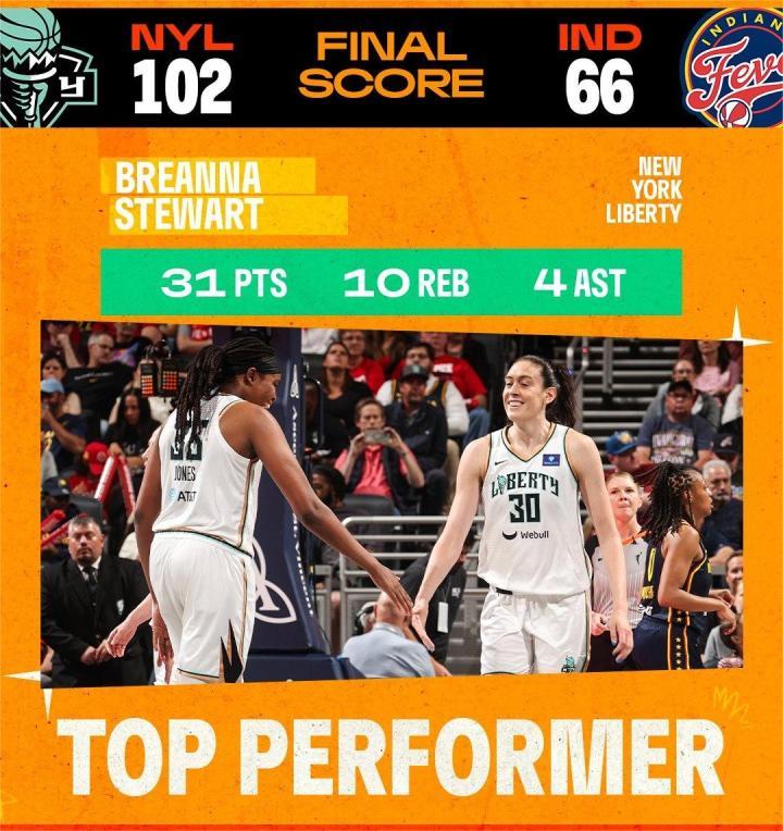 北京时间5月17日,在一场WNBA常规赛对决中,纽约自由人102-66大胜印第安纳狂热,送给狂热开赛两连败。