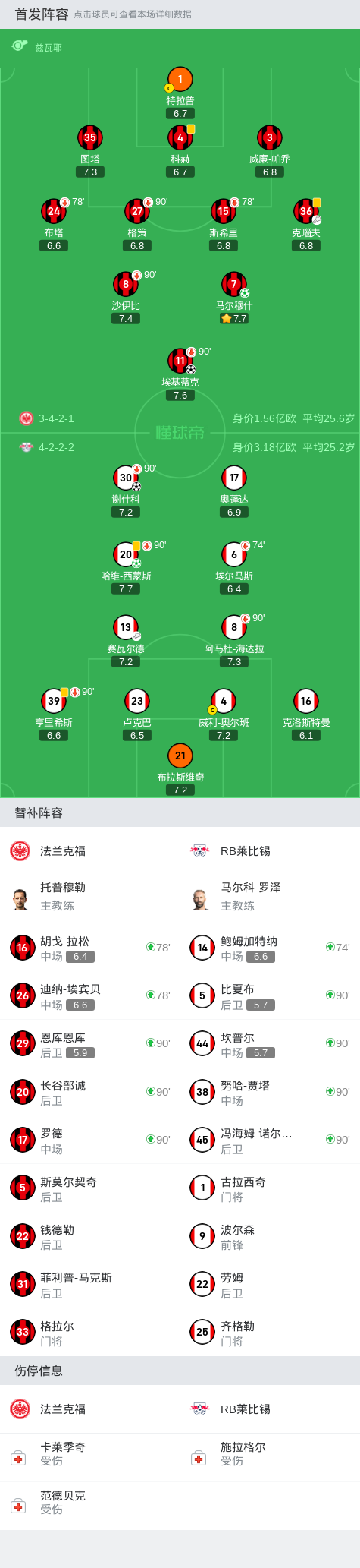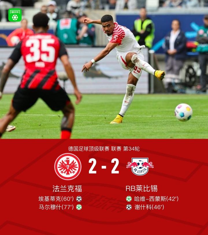 法兰克福2-2RB莱比锡,西蒙斯、谢什科破门,马尔穆什建功