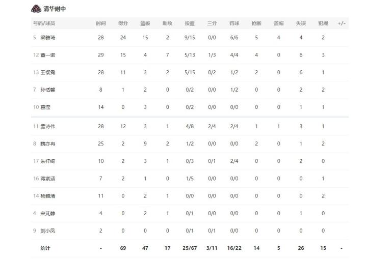 末节比赛,济源一中手感火热,队长赵琳再次命中关键三分打停清华附中。暂停过后,清华附中董一诺连得5分带队打出反击,反超比分且打停济源一中。最后阶段,清华附中掌握比赛节奏,不断扩大领先优势,用阵容深度不断匹配比赛强度。最终清华附中69-62济源一中,拿下全国总冠军。