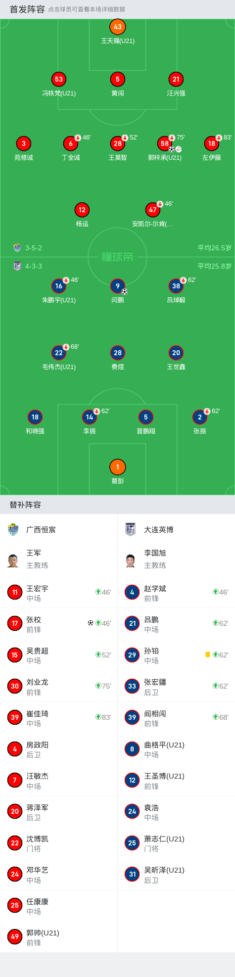 北京时间5月19日中国足协杯 第三轮,广西恒宸主场对阵大连英博。上半场闫鹏禁区弧顶远射破门。下半场郭梓承助攻张校破门扳平比分,之后广西恒宸前场流畅配合,郭梓承单刀挑射破门反超比分。最终广西恒宸 2-1战胜大连英博晋级足协杯第四轮战海港。