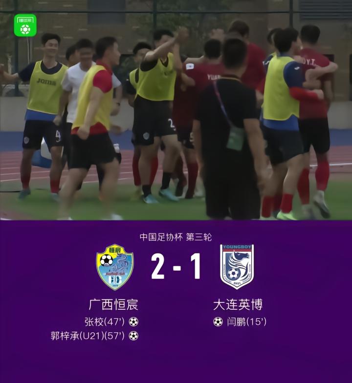 广西恒宸2-1大连英博晋级足协杯第四轮战海港,郭梓承传射