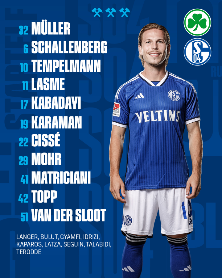 盖村旗帜北京时间21点30分,德乙第34轮,沙尔克客场面对菲尔特,双方名单如下:
