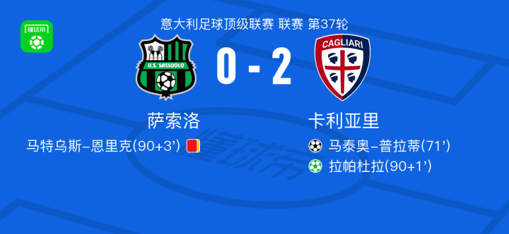 北京时间5月19日萨索洛vs卡利亚里,拉帕杜拉得到全场最高的8.0分,库穆布拉得到全场最低的6.2分
