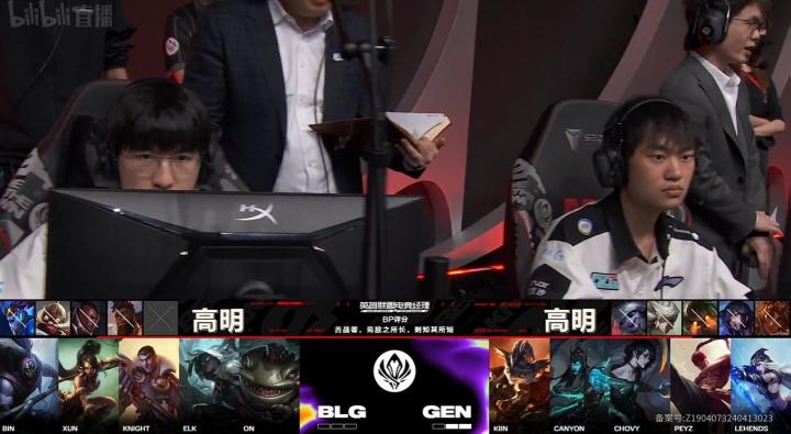 第37分钟,大龙团,BLG打出2换4,knight推掉GEN中路高地。