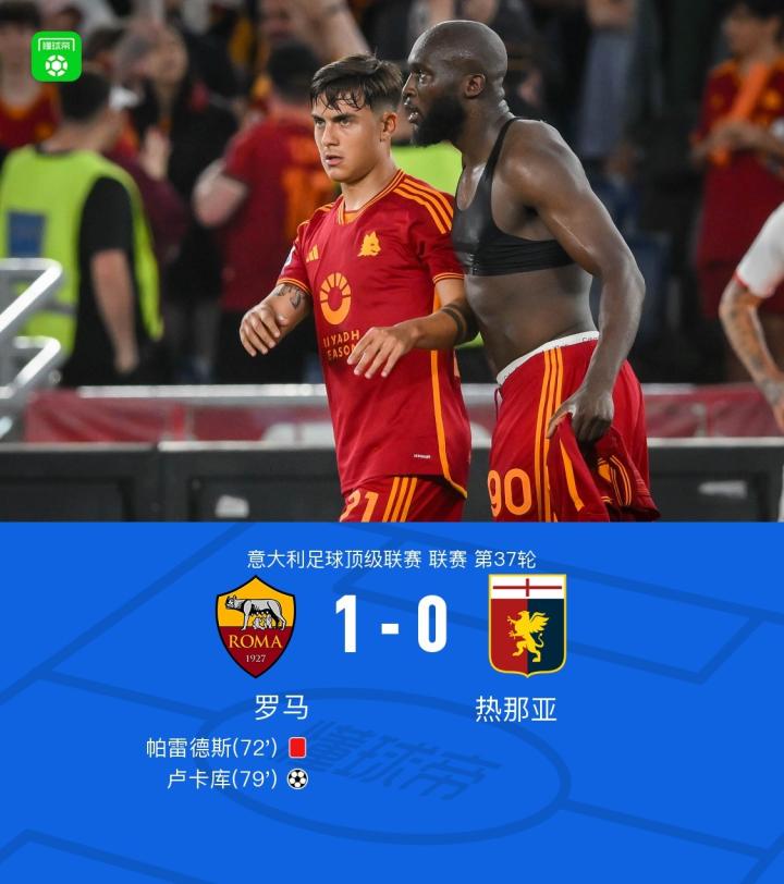 十人罗马1-0热那亚,沙拉维助攻卢卡库头球制胜