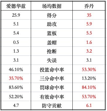 都说华子像乔丹!全面对比爱德华兹&乔丹的生涯第四年