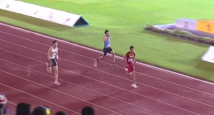 由吴智强、邓智舰、严海滨和陈佳鹏组成的男队以39秒71的成绩夺冠。中国队与韩国队、中国香港队、印度尼西亚队、老挝队、泰国队等队进入决赛。严海滨和陈佳鹏完成三四棒交接时,中国队与韩国队并驾齐驱,最后一棒陈佳鹏再现杭州亚运会“绝杀”的表演,在最后的直道冲刺中率先撞线。