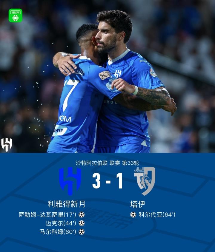 利雅得新月3-1塔伊,马尔科姆破门,迈克尔传射建功