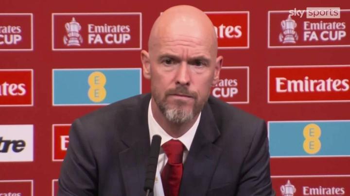 在曼联战胜曼城的足总杯决赛后,滕哈格出席了本场比赛的赛后新闻发布会。