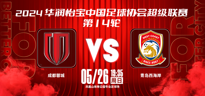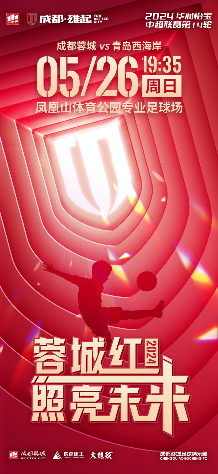 比赛日2024赛季中超联赛 第14轮⚽ 成都蓉城...成都蓉城足球俱乐部 @懂球帝2024-05-26 07:58比赛日 2024赛季中超联赛 第14轮 ⚽ 成都蓉城 vs 青岛西海岸 📅 5月26日 19:35 🥅 凤凰山体育公园专业足球场 📺 成都市广播电视台公共频道、咪咕视频、移动高清、咪视界、咪咕音乐极速版 成都,雄起!展开更多