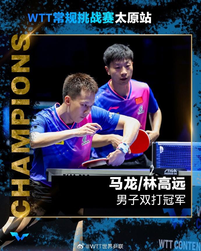 WTT太原站:马龙/林高远3-1王楚钦/梁靖崑,夺得男双冠军