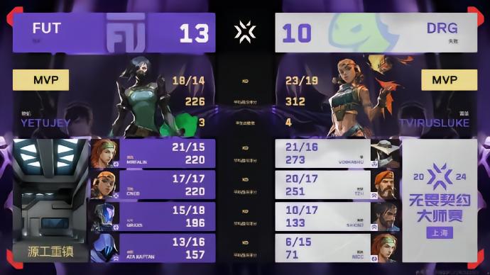 无畏契约上海大师赛:DRG 0-2 FUT遭淘汰;FPX生死局将战TH