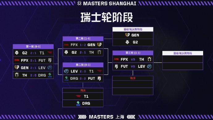 北京时间5月26日,电竞赛事无畏契约上海大师赛瑞士轮继续进行。VCTCN三号种子队伍DRG 0-2不敌FUT遭淘汰。同为1-1的FPX和TH将争夺一张晋级淘汰赛的门票。