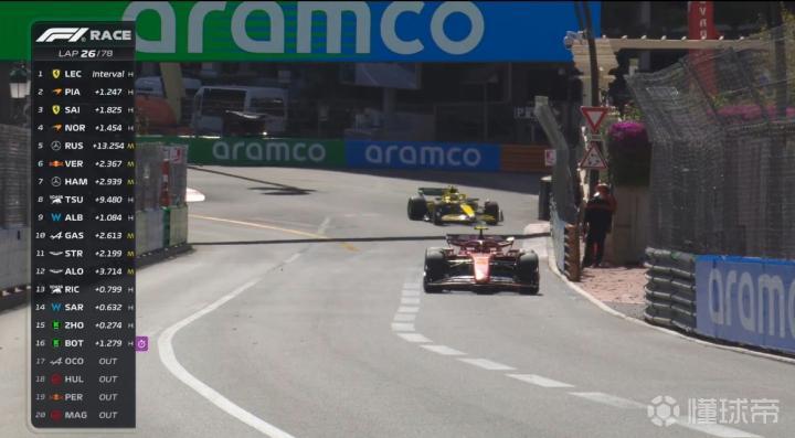 第26圈,前4名车手的差距被拉开到1秒以上!拉塞尔与诺里斯的差距被扩大至13秒!