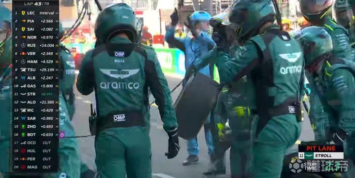 第43圈,斯托尔进站,阿隆索为斯托尔拉开了足够的进站窗口!换胎后保持了进站前的排名!