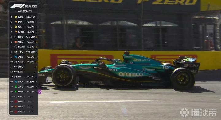 第57圈,周冠宇在隧道中被红胎的斯托尔超越!跌至最后一名!