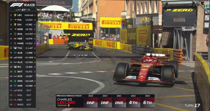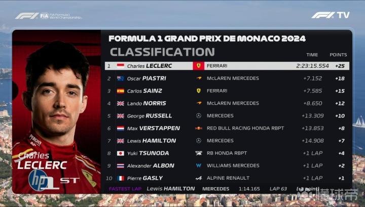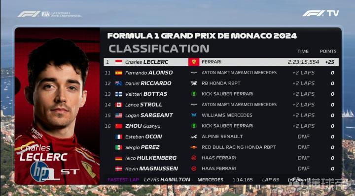 第67圈,F1官方展示了勒克莱尔之前在摩纳哥站的成绩,能打破主场魔咒吗?