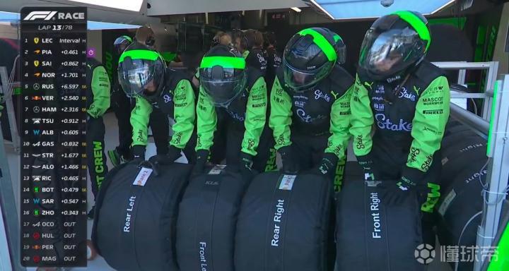 比赛进行至第13圈时,导播将镜头给到了索伯车队的换胎工!这么早就开始准备了?