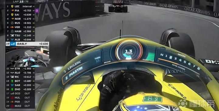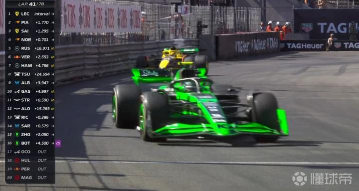 第41圈,比赛中出现套圈的情况,勒克莱尔、皮亚斯特里、赛恩斯相继开始超越慢车!