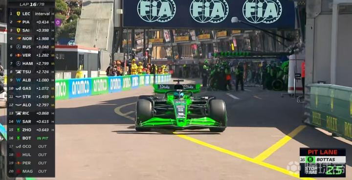 第16圈,博塔斯选择进站换胎!索伯换胎工仅用2.5秒完成换胎!进步显著!