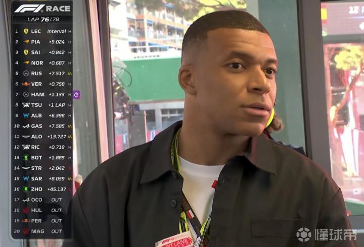 第76圈,镜头捕捉到巴黎圣日耳曼球员姆巴佩来到摩纳哥现场观赛!