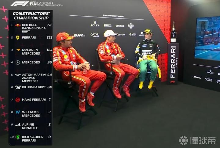 第1-第10:勒克莱尔、皮亚斯特里、赛恩斯、诺里斯、拉塞尔、维斯塔潘、汉密尔顿、角田裕毅、阿尔本、加斯利
