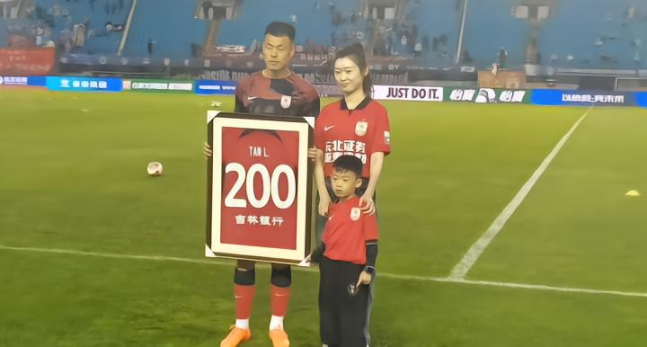 昨晚长春亚泰vs河南队的比赛开始前,长春亚泰俱乐部为老将谭龙举办了200场里程碑纪念仪式,谭龙带着妻子和孩子一起走入球场,享受着主场球迷的致敬和掌声。