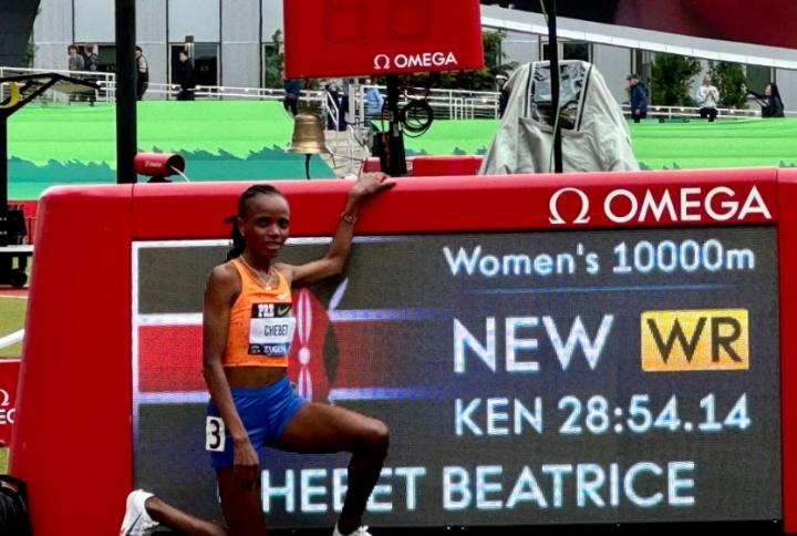 北京时间5月26日凌晨,2024年世界田联钻石联赛尤金站女子万米比赛中,肯尼亚“00后”选手切贝特跑出28分54秒14,夺冠并打破该项目世界纪录。