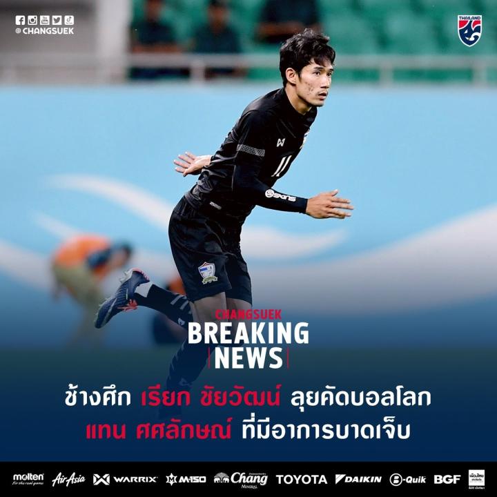 泰国伤情更新:猜亚瓦替补入选;另两位伤员是否替换暂不确定