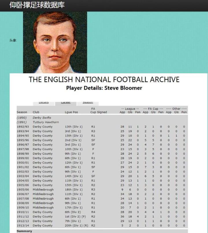 第五是莱万的354球了,第六名是英格兰上古大神布卢默,他的职业生涯活跃于19世纪末至20世纪初(同期中国清朝末期),他的顶级联赛首个赛季能追溯到1892-93赛季了,《倒转金字塔》里曾经写道过在一战集中营里他还组织过比赛,他当年在足球圈有很大的影响力,对英格兰职业足球早期的发展起到非常大的推动作用。