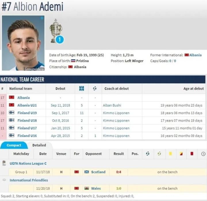 对于阿代米来说,这次落选应该也不算个意外。因为自从2018年阿尔巴尼亚足协把阿代米的国家队出场资格 “占上(进入比赛名单,未获出场机会)” 后,就几乎忘记了这个之前在北欧,现在在中国踢球的球员。