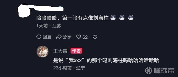 网友称王大雷像刘海柱,大雷:是说“我XXX”的刘海柱?哈哈