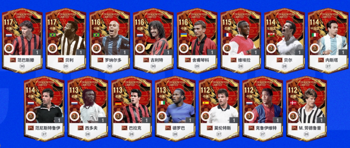 龙年限定赛季,由12名优选的龙年出生球员,和3名经过《足球在线4》(FC ONLINE)用户投票并结合KOL综合讨论一致认可的球员构成。其中,龙年限定赛季M.劳德鲁普将专门由活跃活动投放产出。
