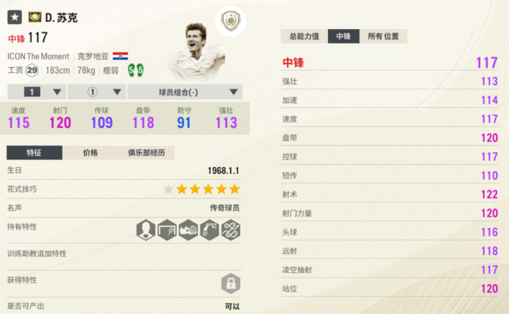 这15名球员的能力值和工资在上图中有,详细属性游戏市场上也能看到。其中范巴斯滕、贝利、罗纳尔多、古利特、舍甫琴科、德罗巴、克鲁伊维特、M.劳德鲁普是55脚。