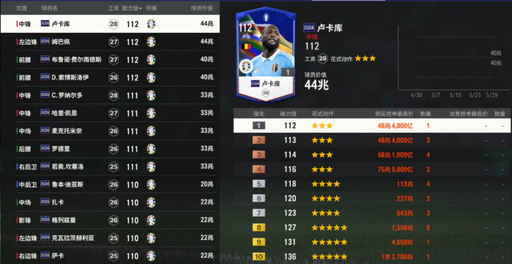 其中,在欧洲杯预选赛中表现优异的姆巴佩、卢卡库、布鲁诺·费尔南德斯、多米尼克·索博斯洛伊等球员,初始1强的能力值达到112。
