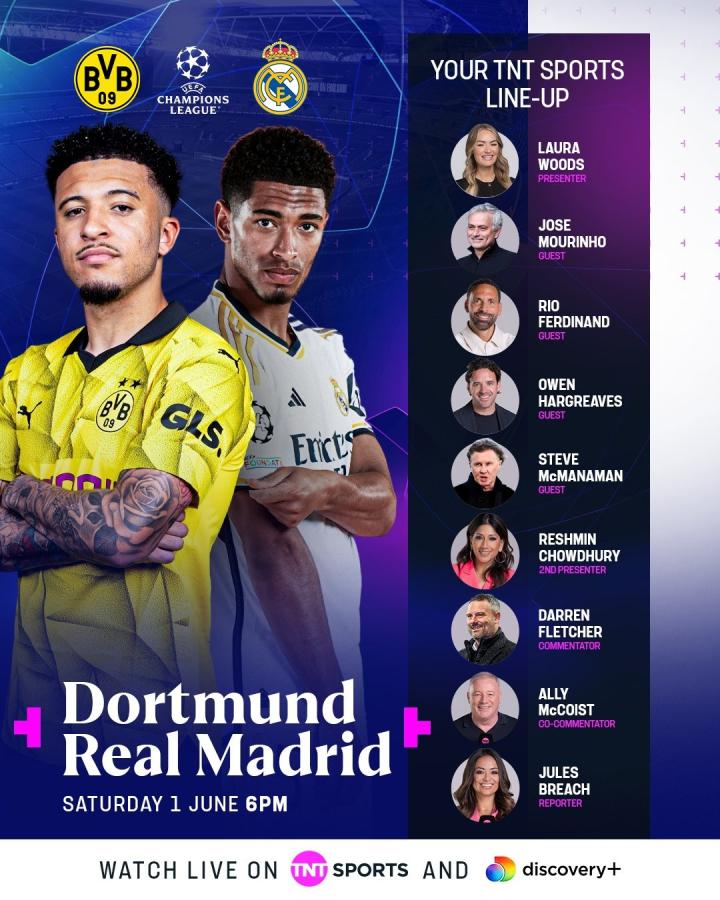 TNT体育官方消息称,穆里尼奥将加入他们的欧冠决赛评论嘉宾阵容中,担任评论嘉宾的还有里奥-费迪南德、欧文-哈格里夫斯和麦克马纳曼等人。