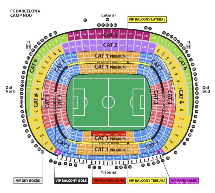 (图为老诺坎普座位示意图,可参考不同看台的位置)