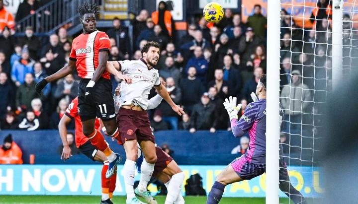 卢顿的伊莱贾-阿德巴约(下图)在10次头球攻门中攻入4球(40%),曼联中场斯科特-麦克托米奈则在9次头球攻门中攻入3球(33.3%)。